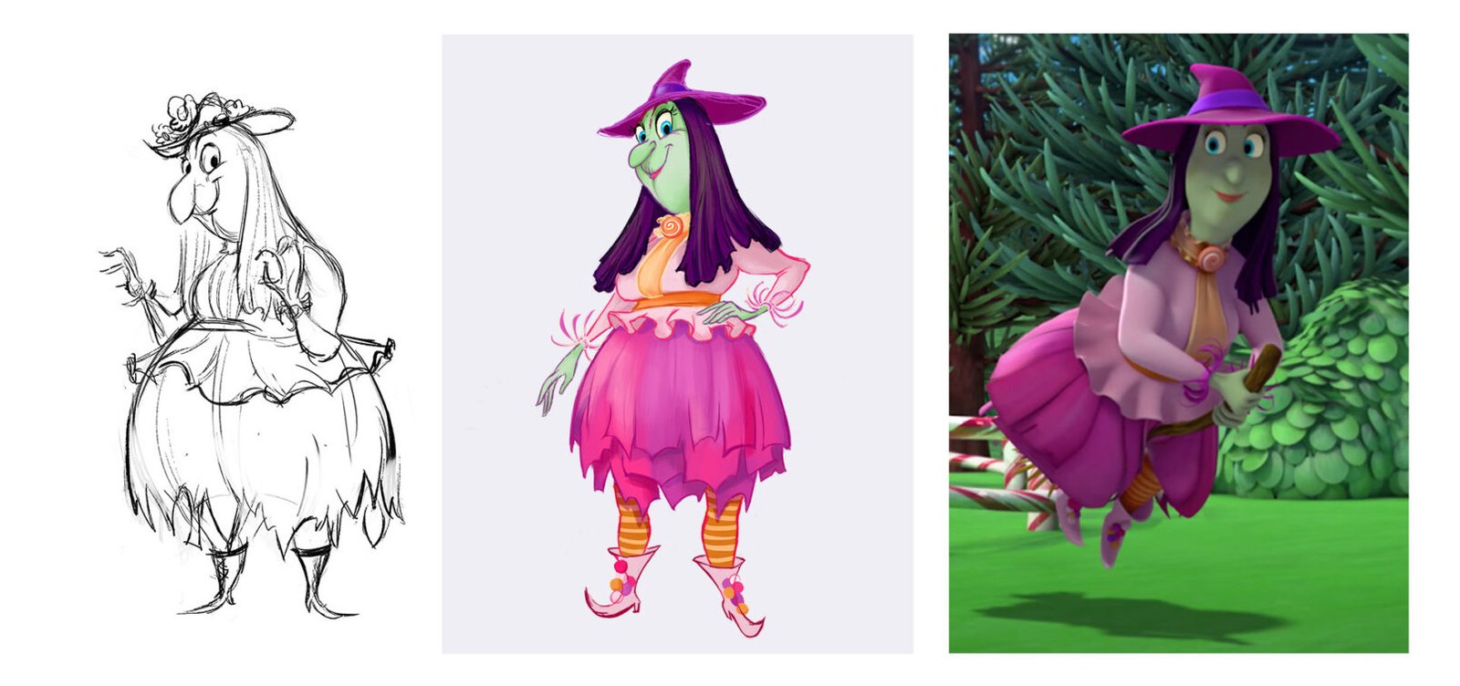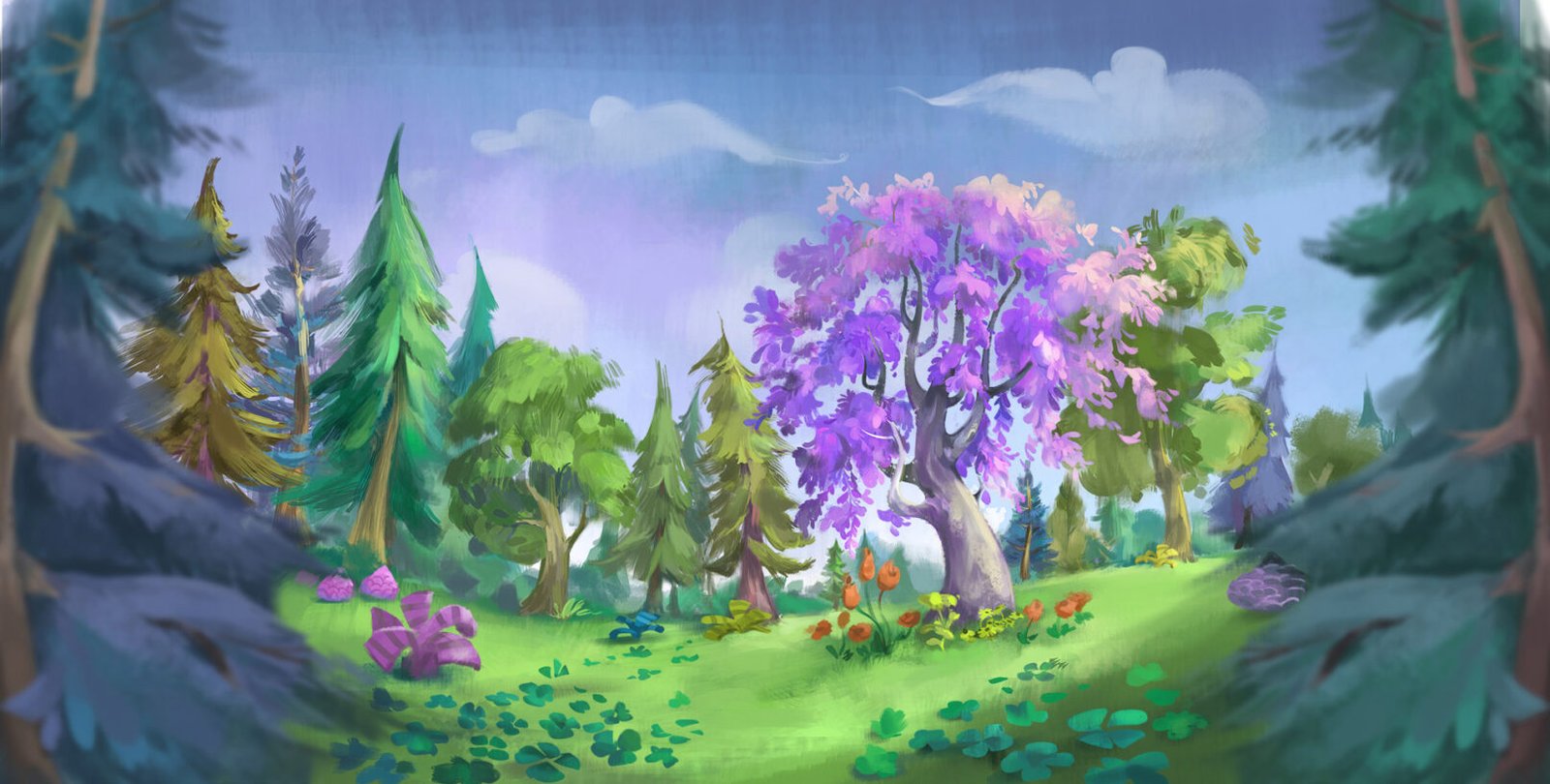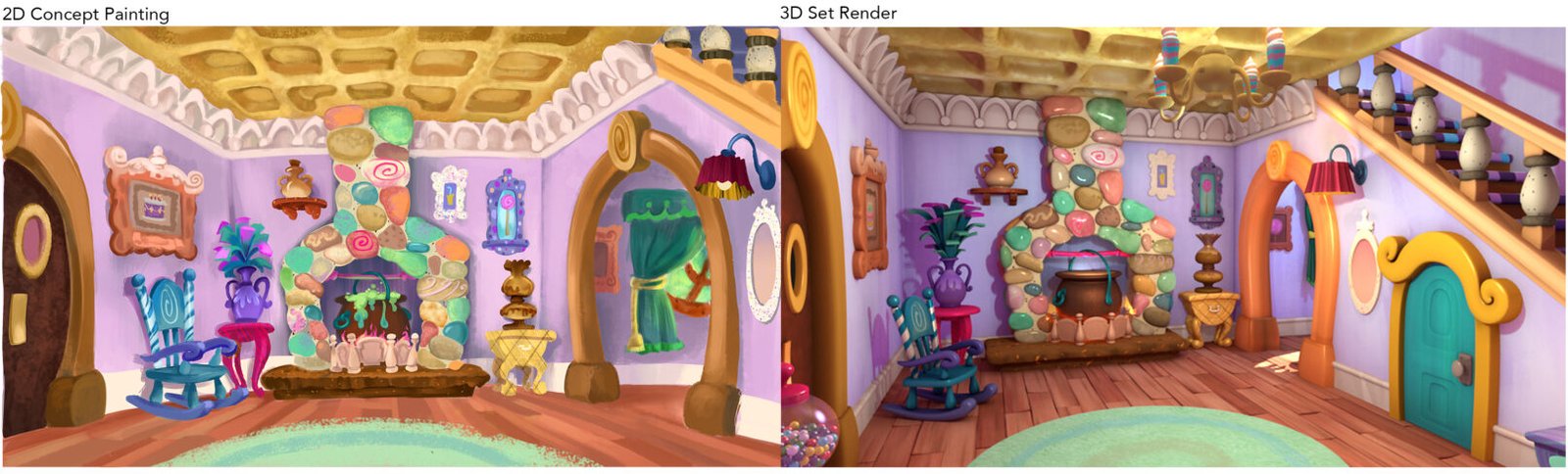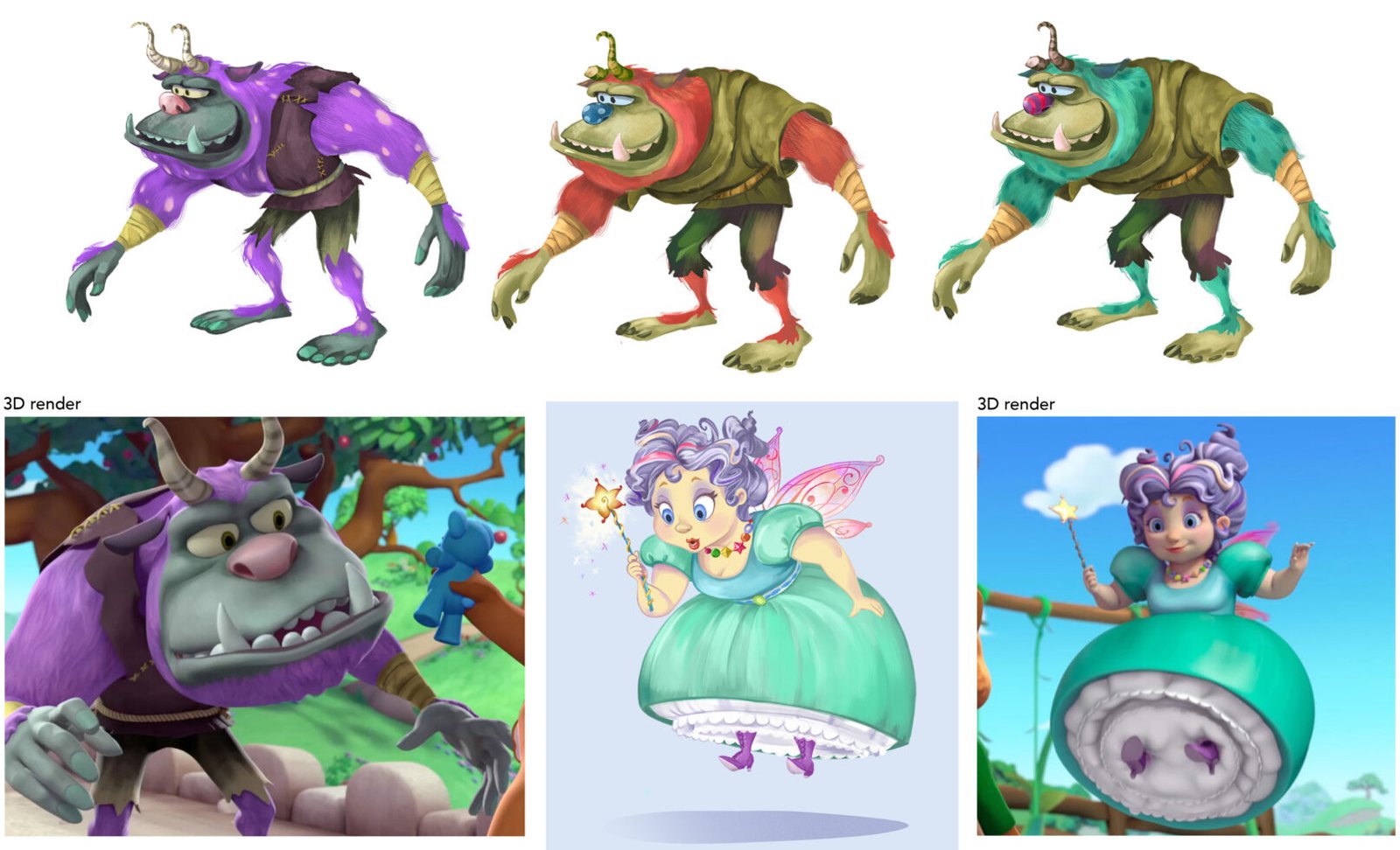 I first began on “Goldie & Bear” on the pilot episode coloring characters, props and backgrounds.  I also did some storyboarding and matte painting.  When the pilot was greenlit for series, I came on as a storybook artist and then took over as the art director and lead character designer.  I collaborated with the vendor studio to establish the look and lighting of the CG series and led a team of 2D designers and oversaw all 3D assets on my first experience as an art director.
