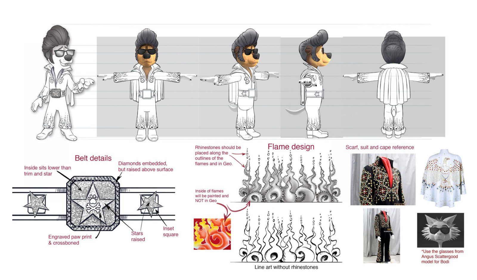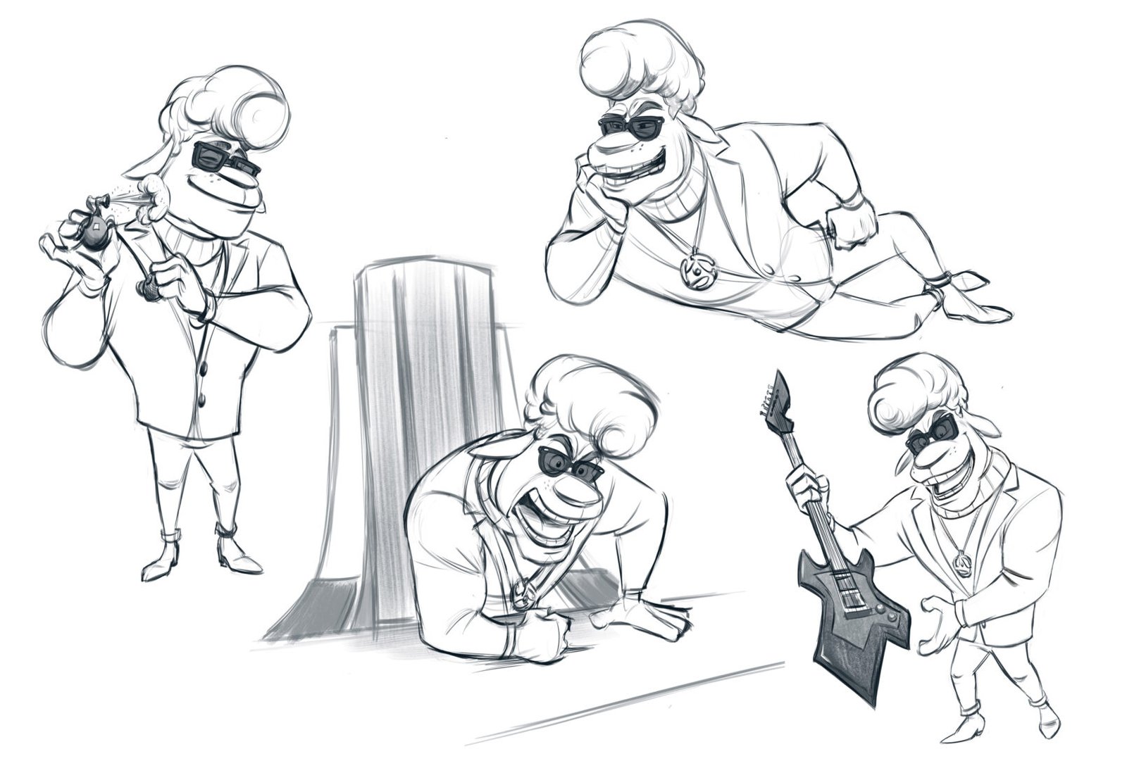 I had so much fun working on “Rock Dog 2 Rock around the Park” at Splash Entertainment! I created character designs, character orthographics, costume designs, expression pages and phoneme sheets for the CG movie sequel.